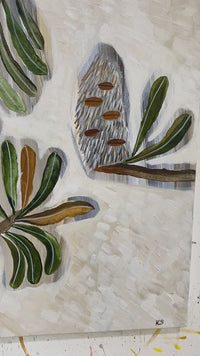 This beautiful artwork, created by Kate Soady, captures the essence of the Evening Banksia flower and pod in a unique and limited colour palette. Perfect for adding a touch of nature to your home decor. Own a one-of-a-kind original from the Blue Mountains artist.
