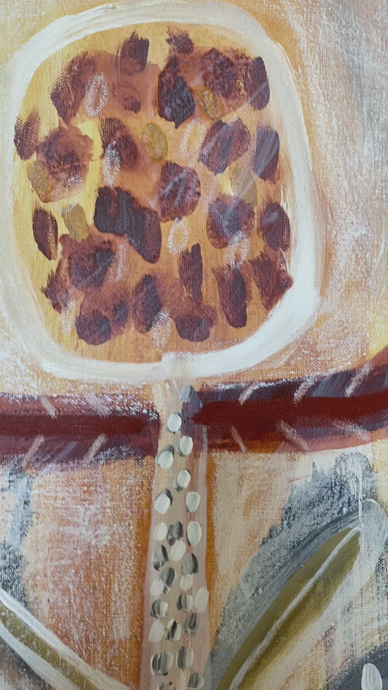 Acrylic on canvas, 105cm x 105cm, framed in Tasmanian oak timber, ready to hang
