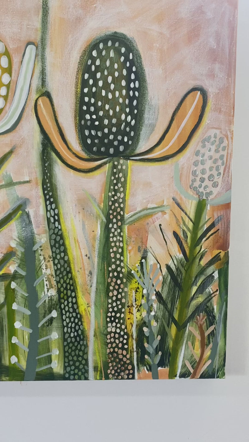 The Wild Nature series is a semi-abstract exploration of the resilient and intricate forms of native Australian flora. These works do not merely depict plants; they capture the vital energy and structural "heartbeat" of the landscape through a sophisticated language of line, texture, and rhythmic movement.
