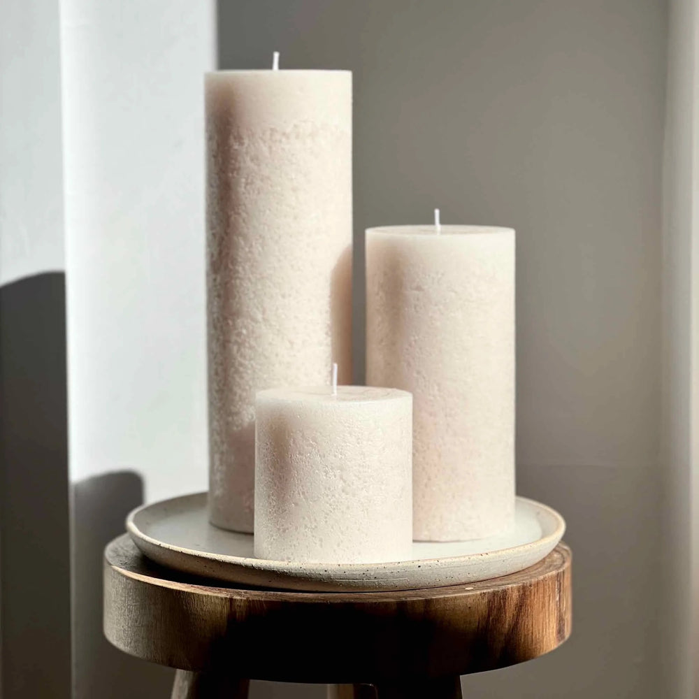 To avoid this tunnelling effect we need to maximise the size of the initial wax pool. This is called setting the memory of the candle, and it is done by burning the candle for 1 hour per 2cm in diameter the first time you light it. For our 7cm diameter pillar candles, the initial burn time should be 3-4 hours, and for our 10cm diameter textured column candles it should be at least 5 hours. Due to their unique shape, our cone candles do not have such a requirement.